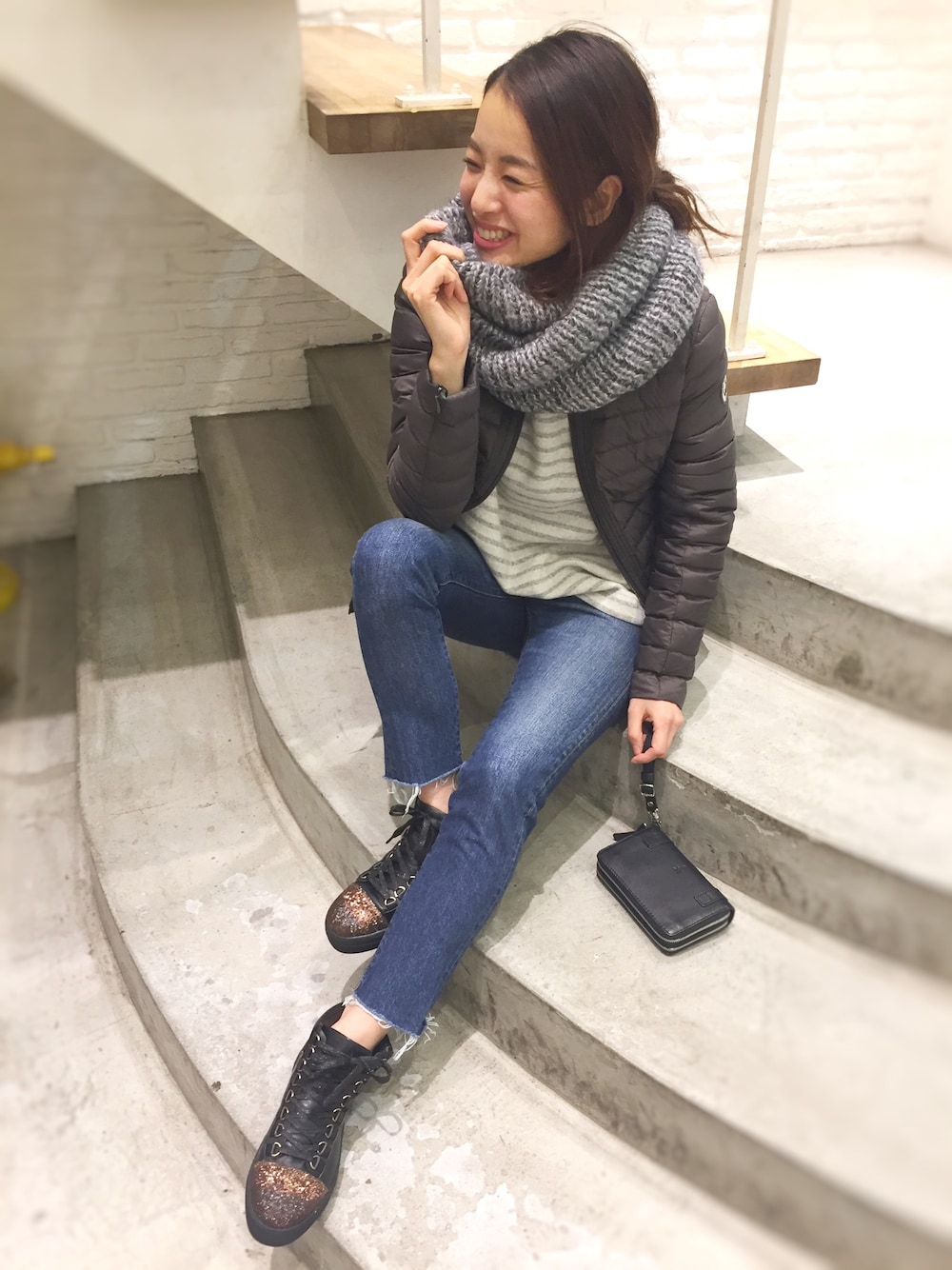 2017年!!初コーデ❤️ お気に入りのダウンはノーカラーでスッキリ見えるのがpoint✨❤️