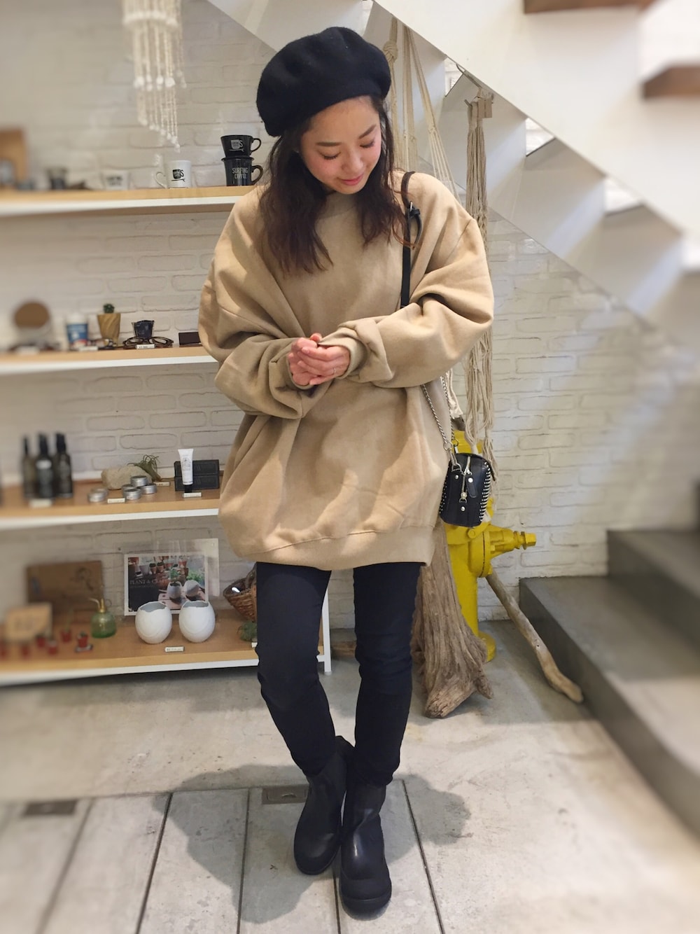 ルーズなシルエットのトレーナーには、BLACKで統一するとスッキリ見えますよー😚❤️