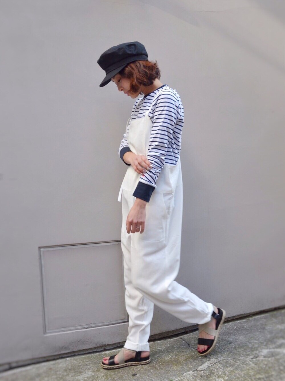 透け感を楽しむシロのサロペット🤔! 私はボーダーをすかして着るのが好きです❤️ インナーで色々雰囲気が変えれるので飽きずに使えますよー❤️