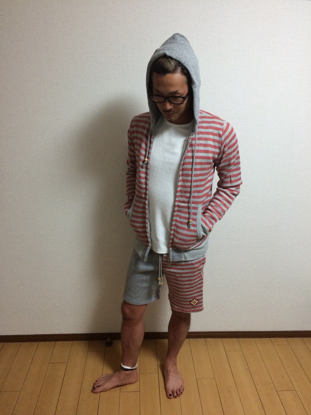 こんにちは\(^o^)/ 微妙な天気で嫌ですね… さて、今日も頑張りますか‼︎ では今日のコーディネートです(^^;; 眼鏡:レイバン パーカー:ソルカ(ロンハーマン) Tシャツ:レイジブルー パンツ:ソルカ(ロンハーマン) 今日は、楽に部屋着的な感じ的な‼︎笑笑笑 そしてこの生地…着心地最高です(^_−)−☆ よろしくお願いします\(^o^)/ Good luck‼︎ Thank you... T.K