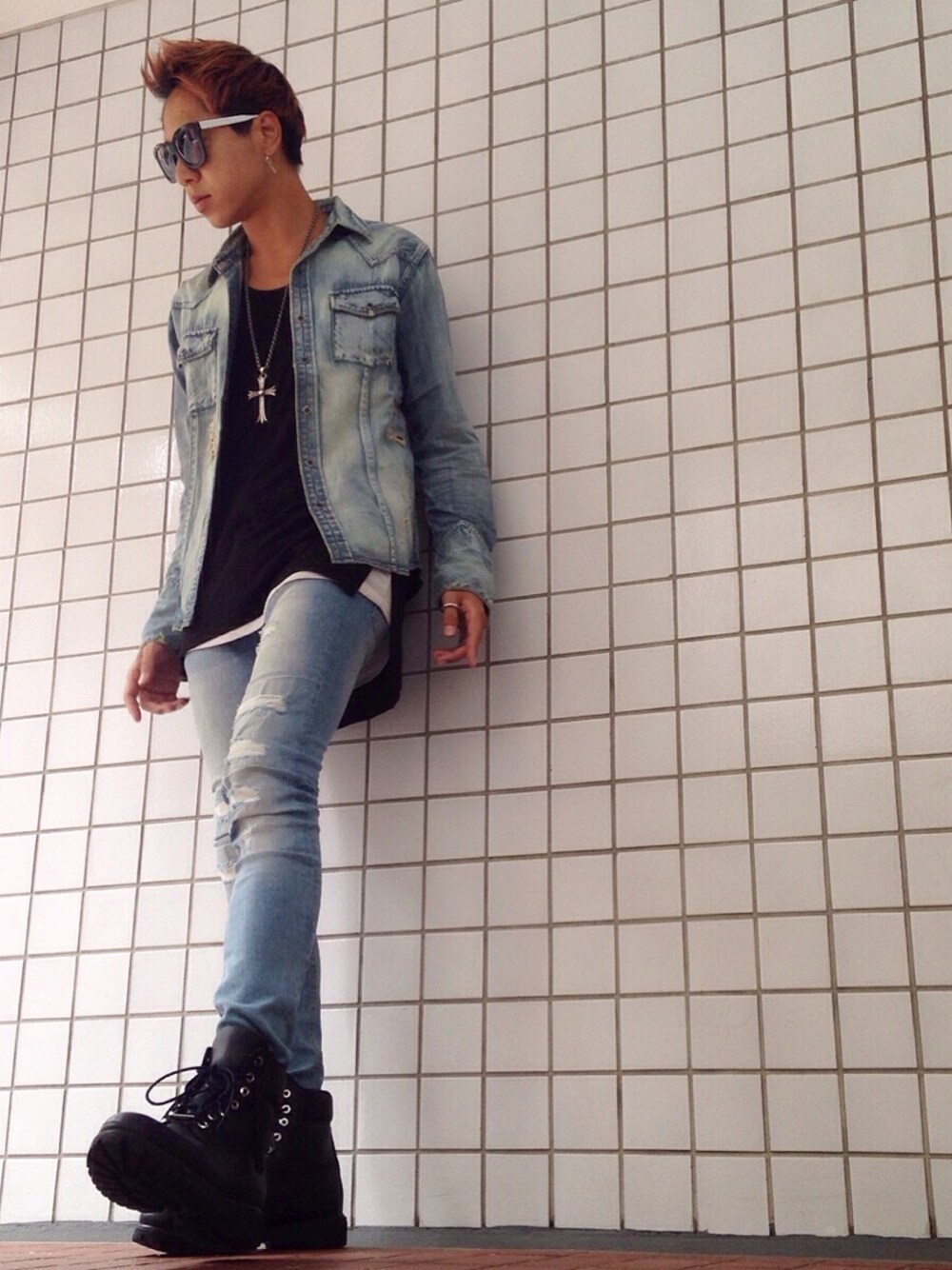ともじのシャツ/ブラウス「ダメージウエスタンデニムシャツ」を使ったコーディネート