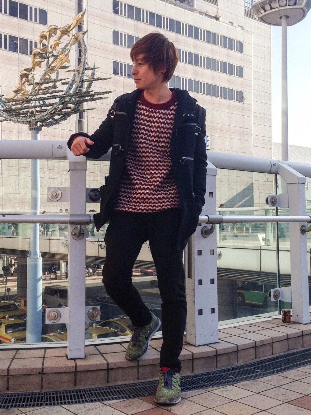 ブラック系のその他パンツ、その他のスニーカーを着用したメンズの冬コーディネートの1枚目の写真