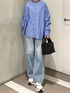 シンプルなスタイリングに映える、ブルーのコットンダブルポケットワイドシャツ。 綿素材でロングシーズン取り入れやすく、羽織としても活躍する一枚です。 合わせたかぐれの定番デニムは、リラックスした穿き心地ながら、下半身をカバーしてくれます◎ 足元はニューバランスのスニーカーを合わせて、歩きやすさも兼ね備えた大人カジュアルに。