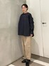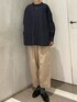 ネイビー×ベージュコーデ。 落ち着いた色合わせでまとめました。 リネン×コットン素材のシャツは 軽やかな着心地。 ボタンを開けて羽織りにも使えるので ロングシーズン活躍してくれそうです◎