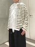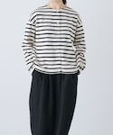 フリルが印象的なコットンブラウス。 甘さはありつつ 近江晒の風合いで 落ち着いた雰囲気に。 ボーダーを重ねて 程よくカジュアルに合わせました。 ジャケットのインナーにもおすすめの 着回しの効く1枚です○