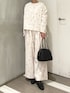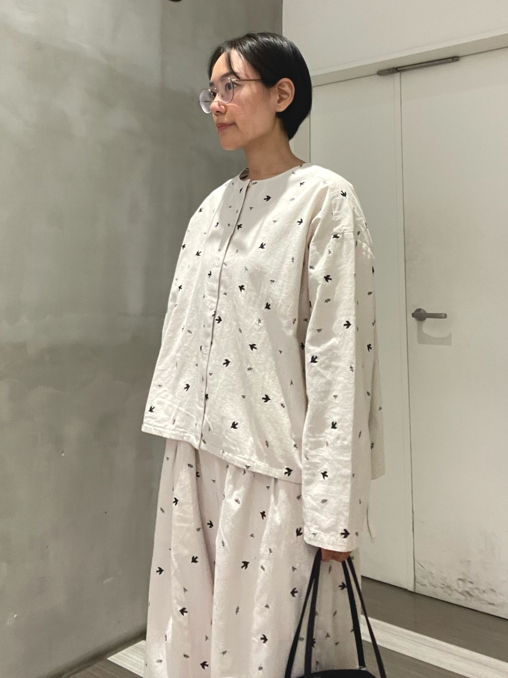 ツバメ刺繍のブラウスとパンツでセットアップコーデ。 レザーの黒小物で甘さをほどよく抑えました。 ブラウスは総ボタンで羽織としても使えます。 アイボリーのパンツは裏地付きで安心感があり ほどよいワイドシルエットです。 刺繍入りながら洗濯機で洗えるのも嬉しいポイント。 セットでも単品でも使いやすいシリーズです○