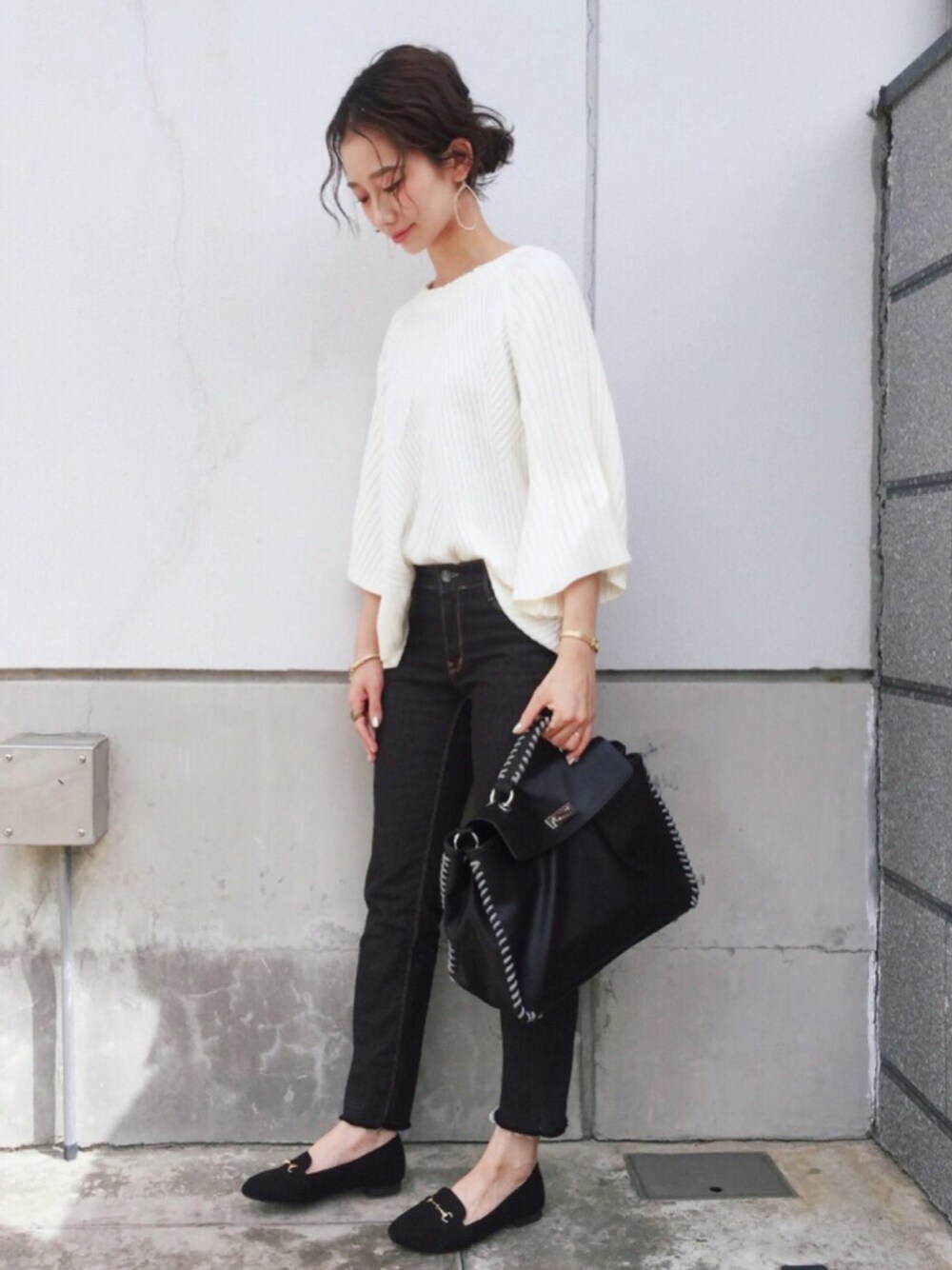 頼んでたニットが届いた〜♡ しっかりしていて袖も短めで今から着れるし編み方が可愛い😭💘 女の子らしい感じになるから他はブラックで♡ ローファーはハルタとロペピクニックのコラボで、めっちゃ履きやすくて痛くならないしすでにヘビロテしてます!◎ ネイビーも購入しました!✨