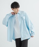 青のシャツ/ブラウス「オーバーサイズシャツ ストレッチとろみビッグ長袖シャツ 無地」を使ったコーディネート