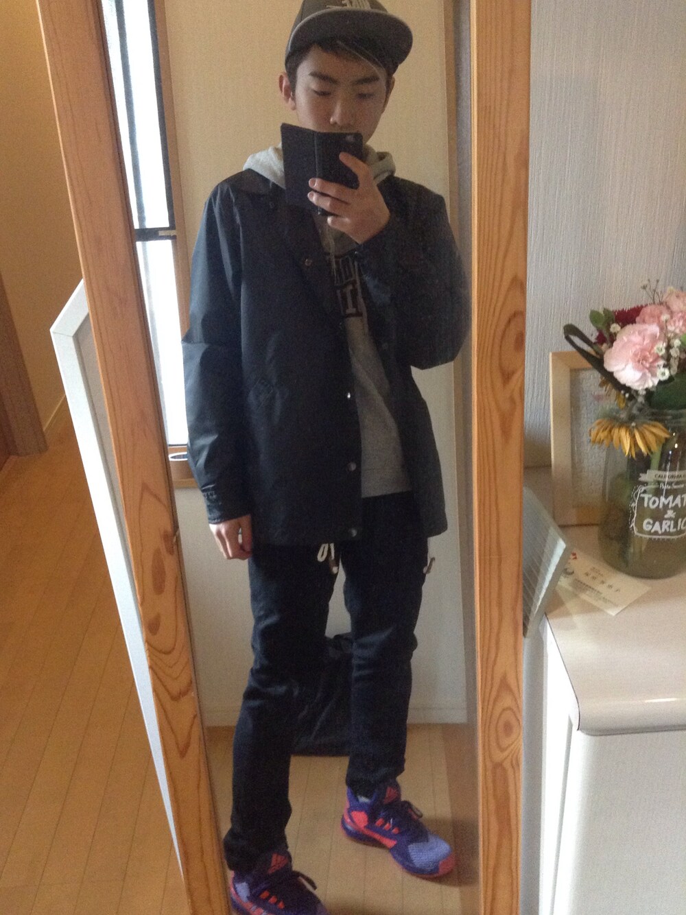 流行りのコーチジャケット😎 バッシュも外履きで!