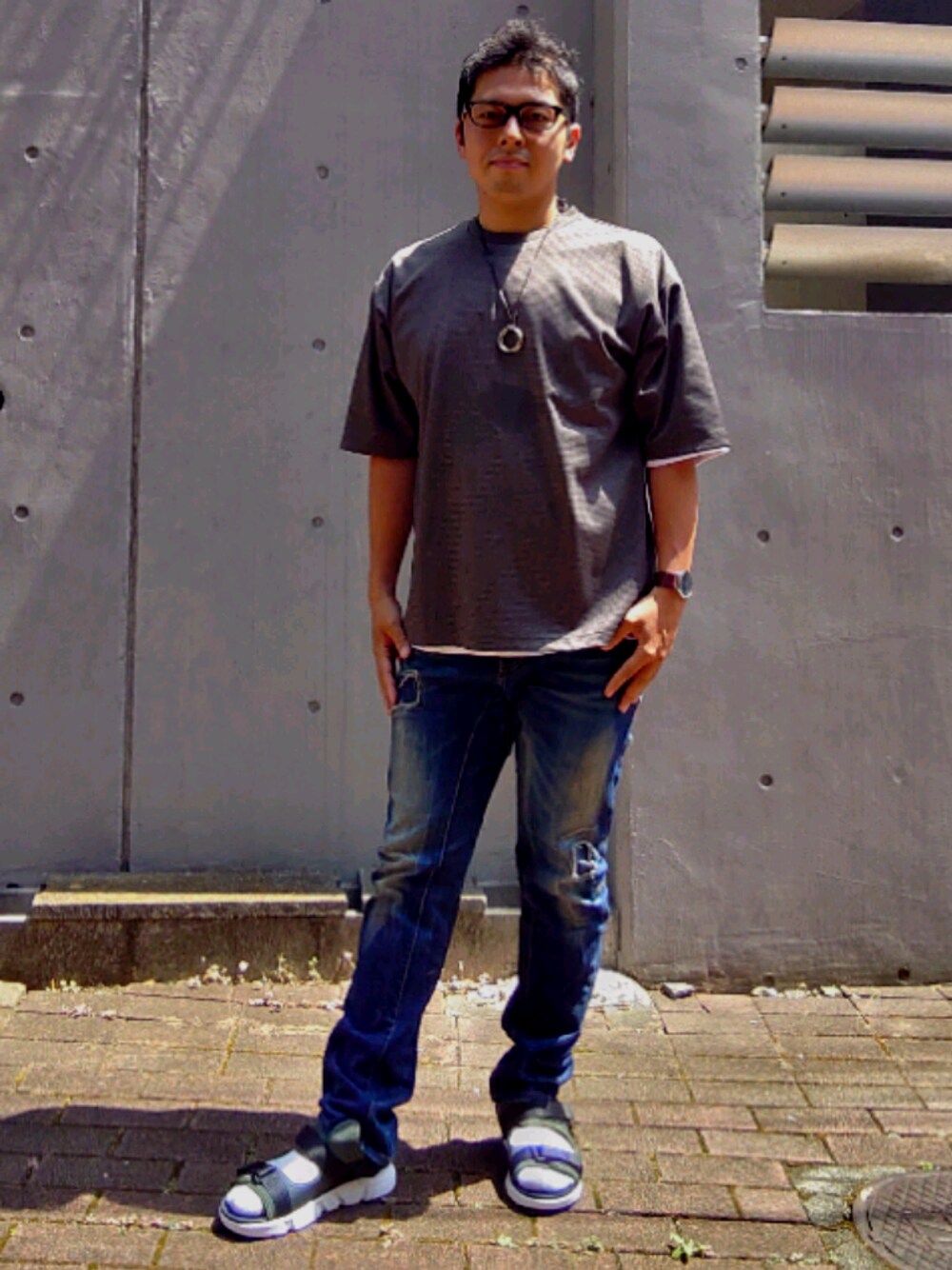 オーバーサイズ×エアリズム ソックス×スニーカー ダメージデニム×メガネ 初めての組み合わせ(笑) 今日は親友の誕生日祝いへ