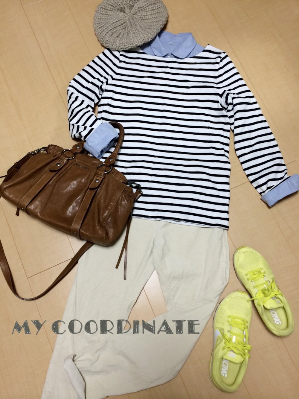 ボーイッシュになり過ぎない様にベレー帽と丸襟シャツで♪ カジュアル感が出過ぎない様にmiumiuのbagをワンポイントに♪