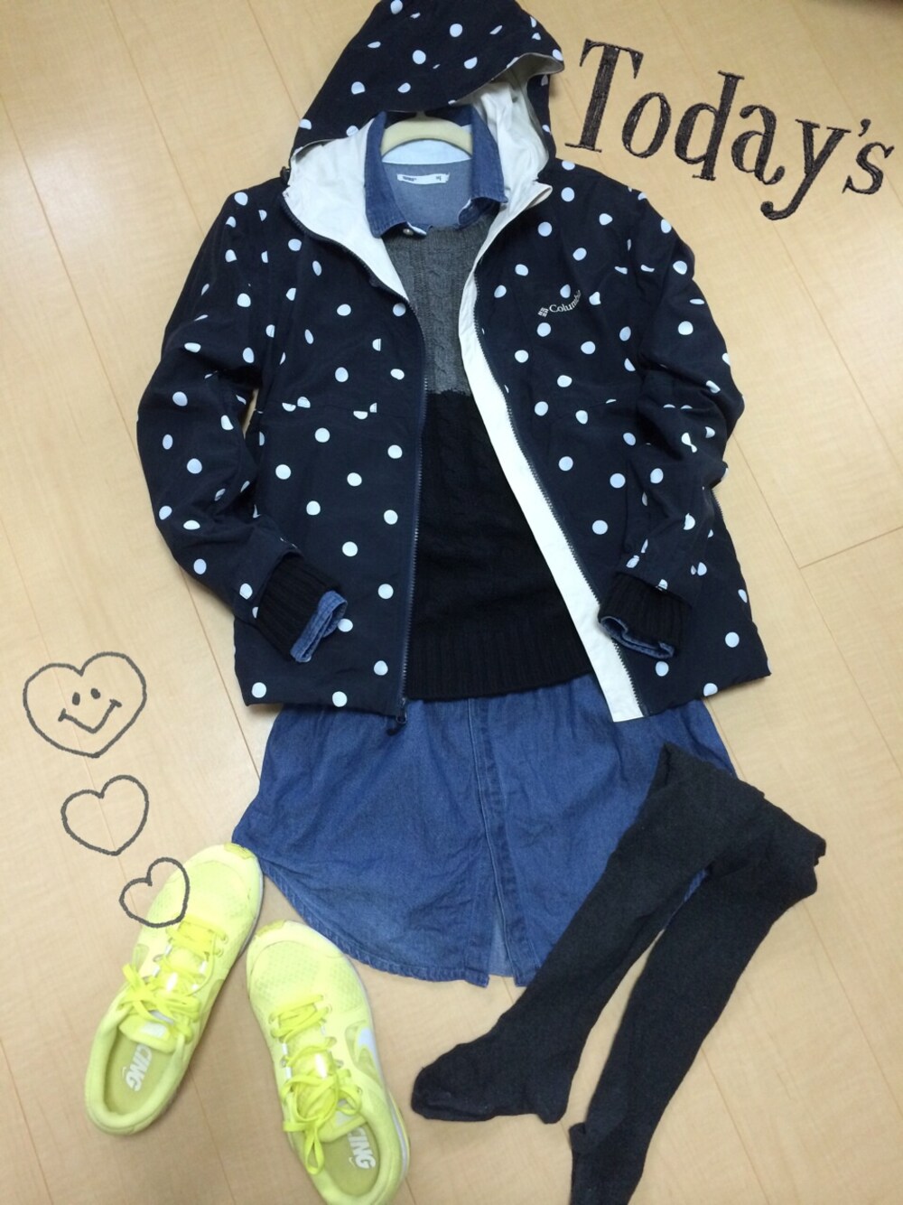 雪だ雪だー!サムイーサムイー!!! 全体的に暗めだからスニーカーだけワンポイント明るめに♬