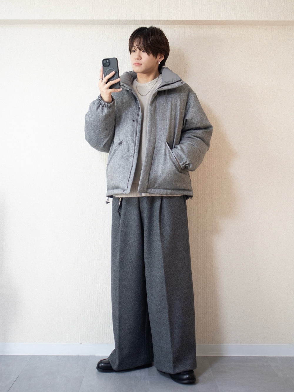リバーシブルで楽しめるダウンジャケット! 表はウール調、裏はナイロンで、気分に合わせて変えることができる🎶 グレーのワントーンコーデ、どっちが好きですか? タップすると、アイテム詳細がチェックできます👍🏻 ̖́-︎ ✎☡─────────────────────────── 閲覧ありがとうございます! 是非こちらもフォローをお願いします🤝🏻⋆͛ ともき 〈168cm〉 WEAR... @tomokimokimoki Instagram @tomoki.mokimoki ✎☡─────────────────────────── アイテムの使用感やサイズ感など 質問があれば、気軽にコメントして下さい! ご用件等はInstagramのDMにお願いします