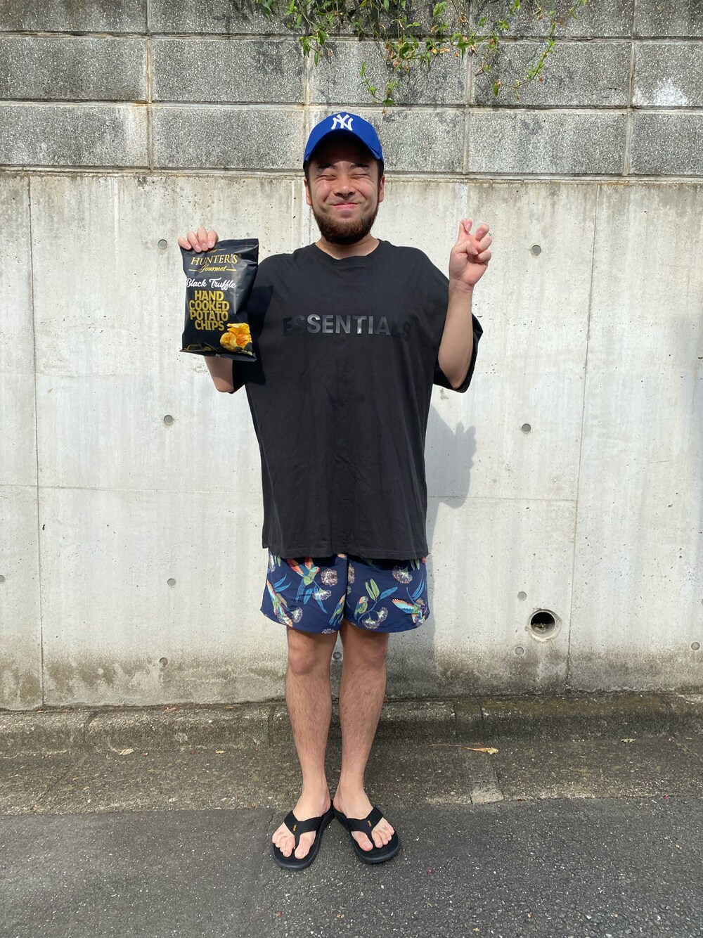 ご覧頂きありがとうございます🙏 バギーズとビーサン楽すぎてやばいです😂笑 部屋を整理していたら2年前位に地元の仲間と 飲んでてぶっ潰れた時に着ていた1度しか 着ていないfogのTシャツを発見したので 着てみました!暴れていたせいか首元ゆるゆる笑 先日酒屋さんでお酒を買いに行った際店員さんに 今話題の高級ポテチが今日入荷したんですよ! お一ついかがですか?👩と言われ値段を見て 度肝抜かれました…一袋430円…高っ!笑 でも、昔から押しに弱い自分…気づいたら 2袋(860円)買ってました…本当カモだなぁ😫 昔バカの一つ覚えでどの写真を 見てもこの豚足ピースをやってました💧 久々にやりたくなったので 高級ポテチ×豚足ピース🐽✌️ ブッサイクな笑顔に気分を害された方 本当に申し訳ございません🙇♂️ 長々と失礼致しました! もしよろしければいいね、コメント、フォロー の方よろしくお願い致します🙌