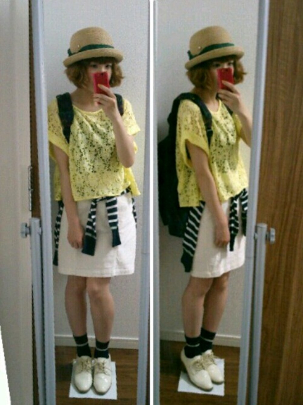 トップス、カーデ、靴下/mystic 麦わら帽子/emフルール リュックが気に入りすぎてやばいです♡
