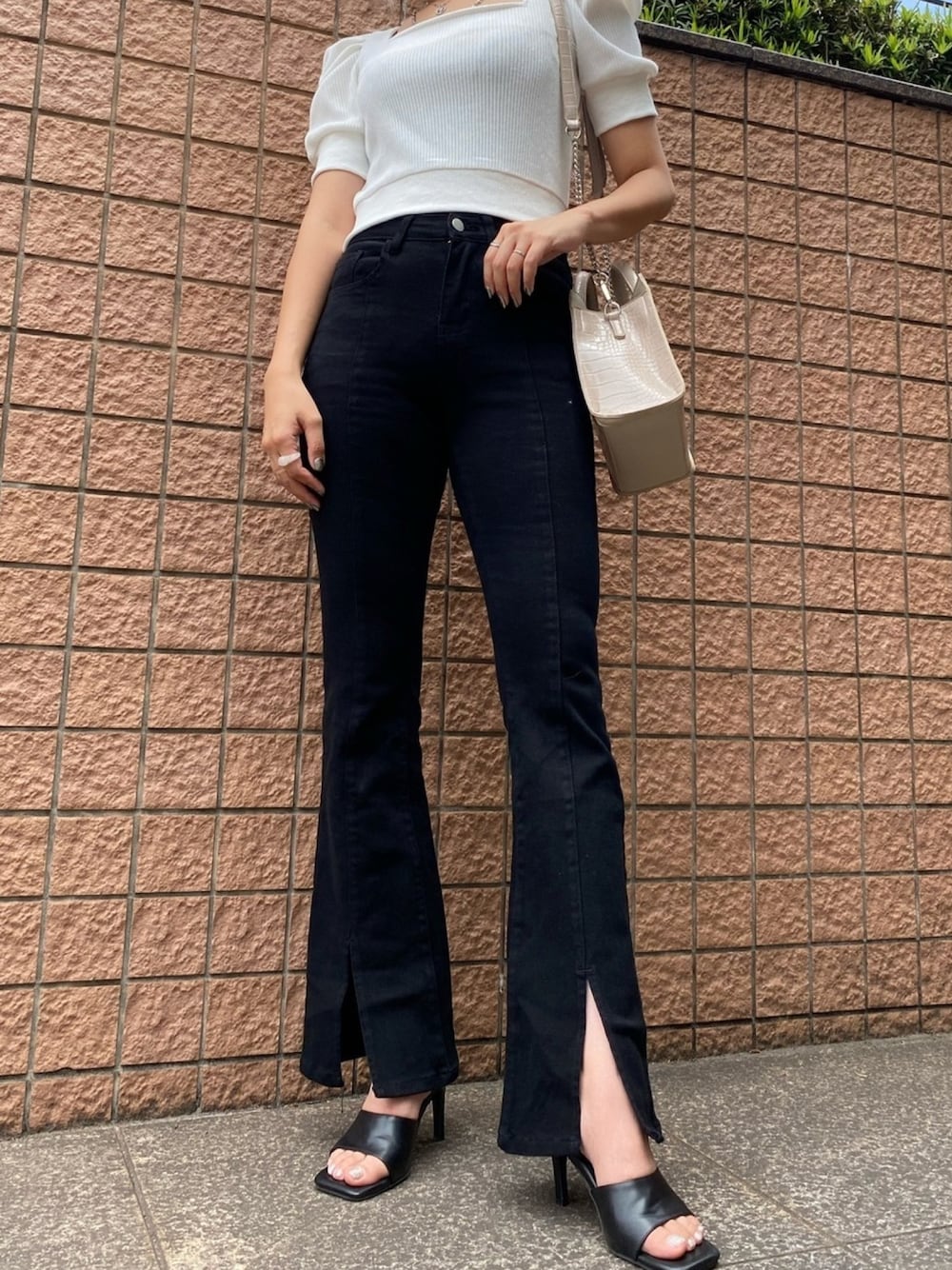 ご覧頂きありがとうございます♡ フロントスリットで脚長効果🙆🏼♀️ フレアパンツを着用しました🧸