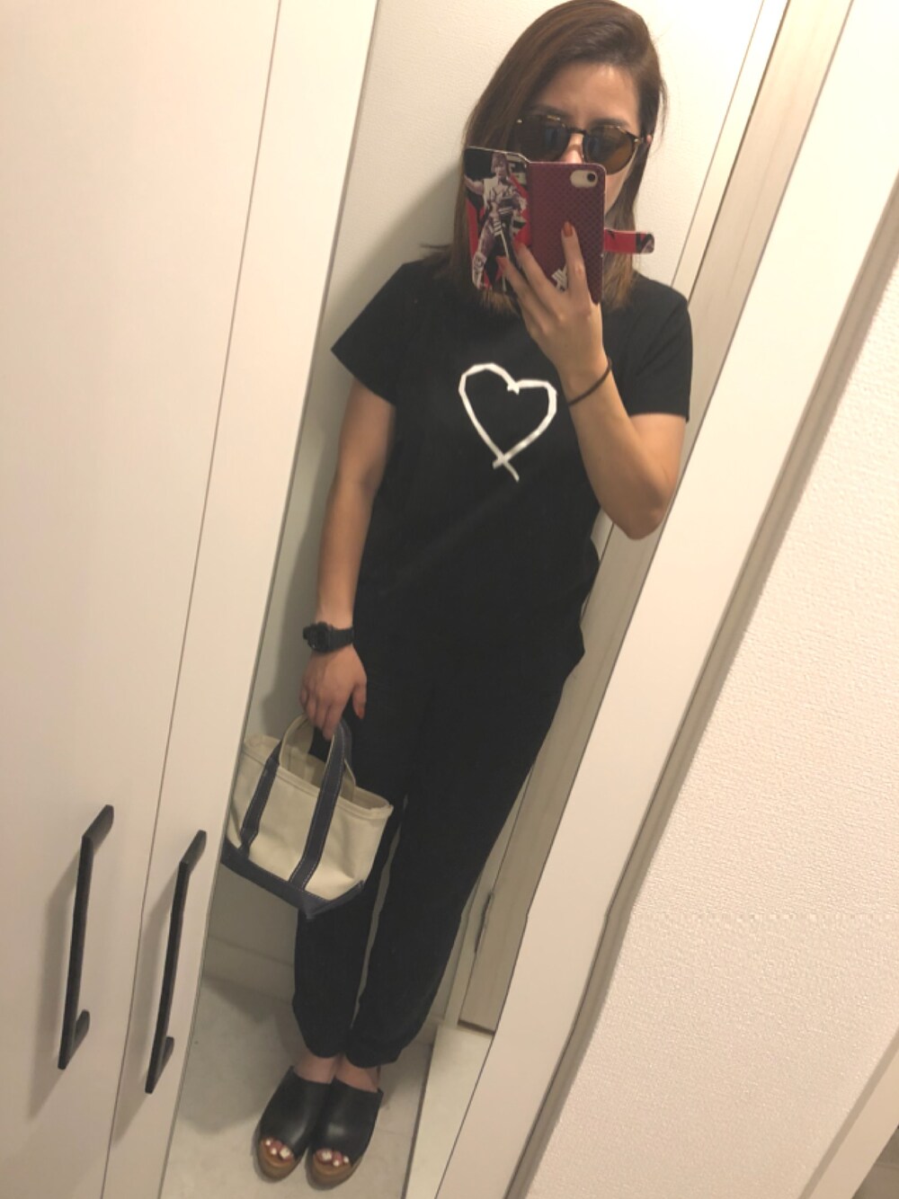 暑いばい💦 大好きな人のブラックコーデが大好きなので、私もマネしたよ このTシャツかわいい♡