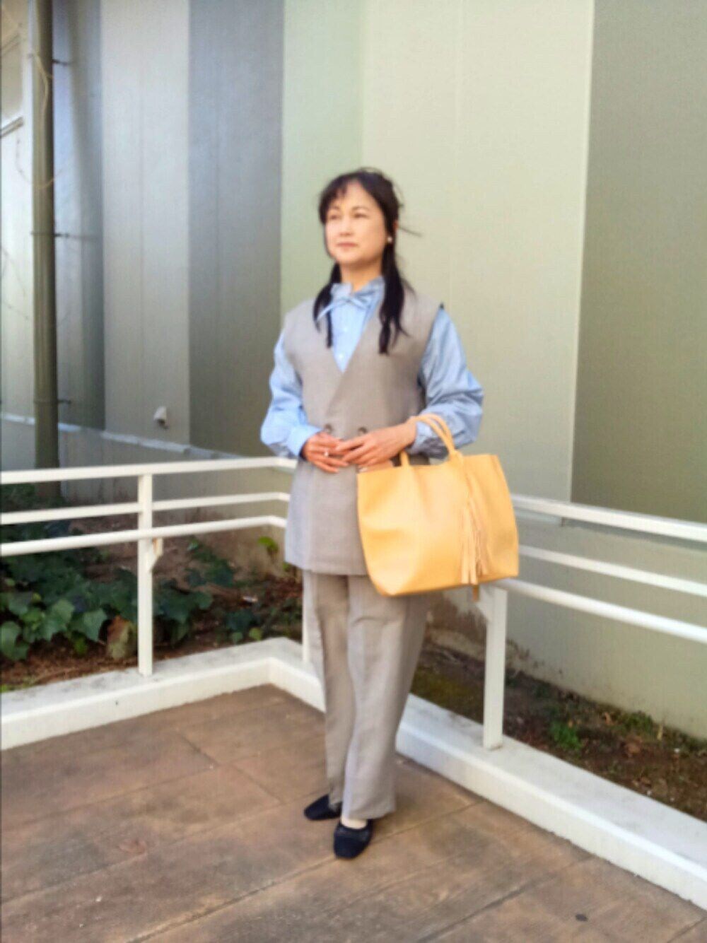 tomoleomia(warehouse 三井アウトレットパーク入間)のセットアップ「『UVカット/接触冷感』ホップサックジレ×パンツセット」を使ったコーディネート