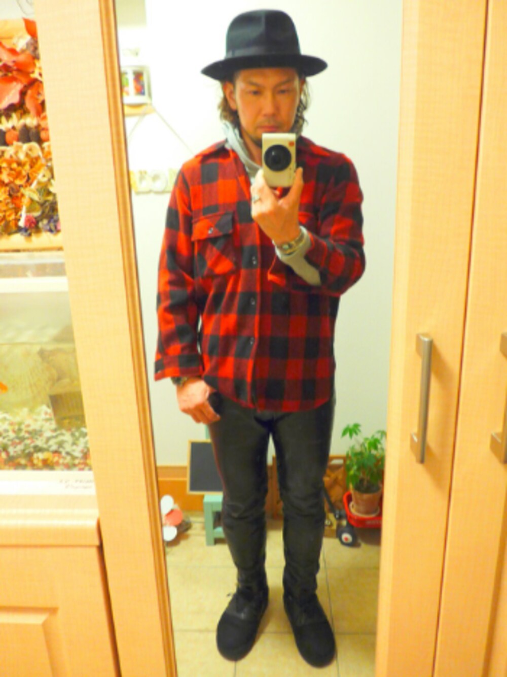 チェックウールシャツ×パーカー× レザーパンツ☆ メッチャ寒い(涙) 今週中頃から、また一気に寒くなるみたい(涙) コタツから出られないよ~(笑) いつも見てくれてThank You~☆☆☆