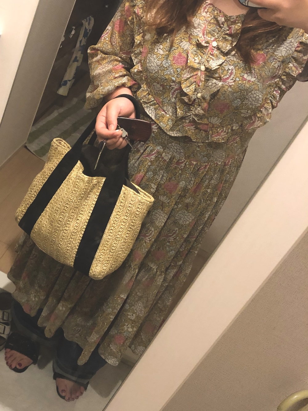 usumで買った花柄ワンピ 派手かなぁ思ってたけど 可愛くてお気に入り♫ だいぶ涼しくなってきたな〜