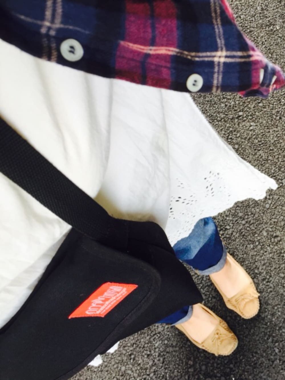 GUのデニム、安いけど、 色がいい感じで好きです(^_^)💓 白ワンピはもはや3年目くらい。 大活躍🎶🎶🎶