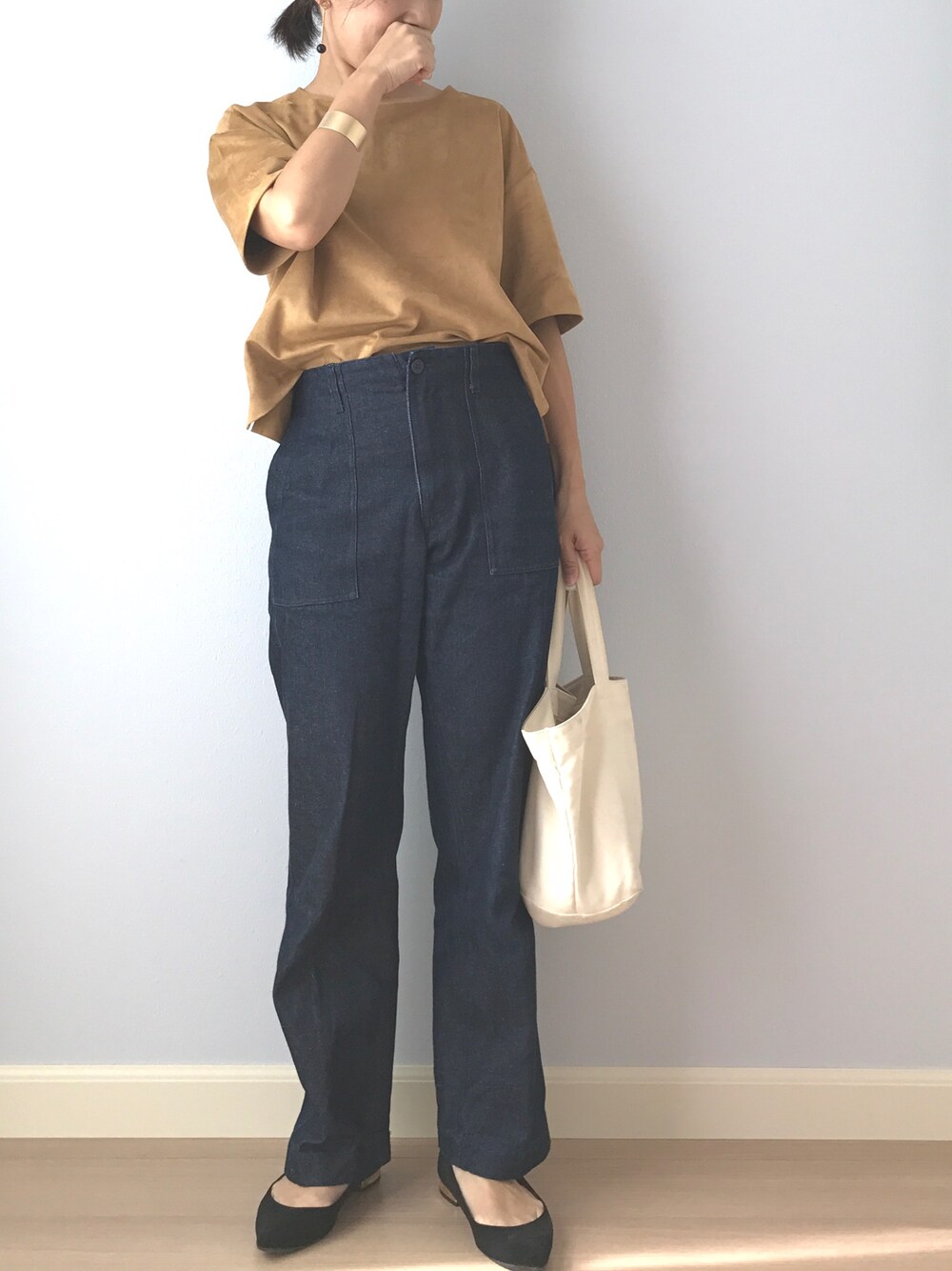 この時期去年のユニクロ スエードタッチtを愛用してます♡ 素材だけ秋っぽく…