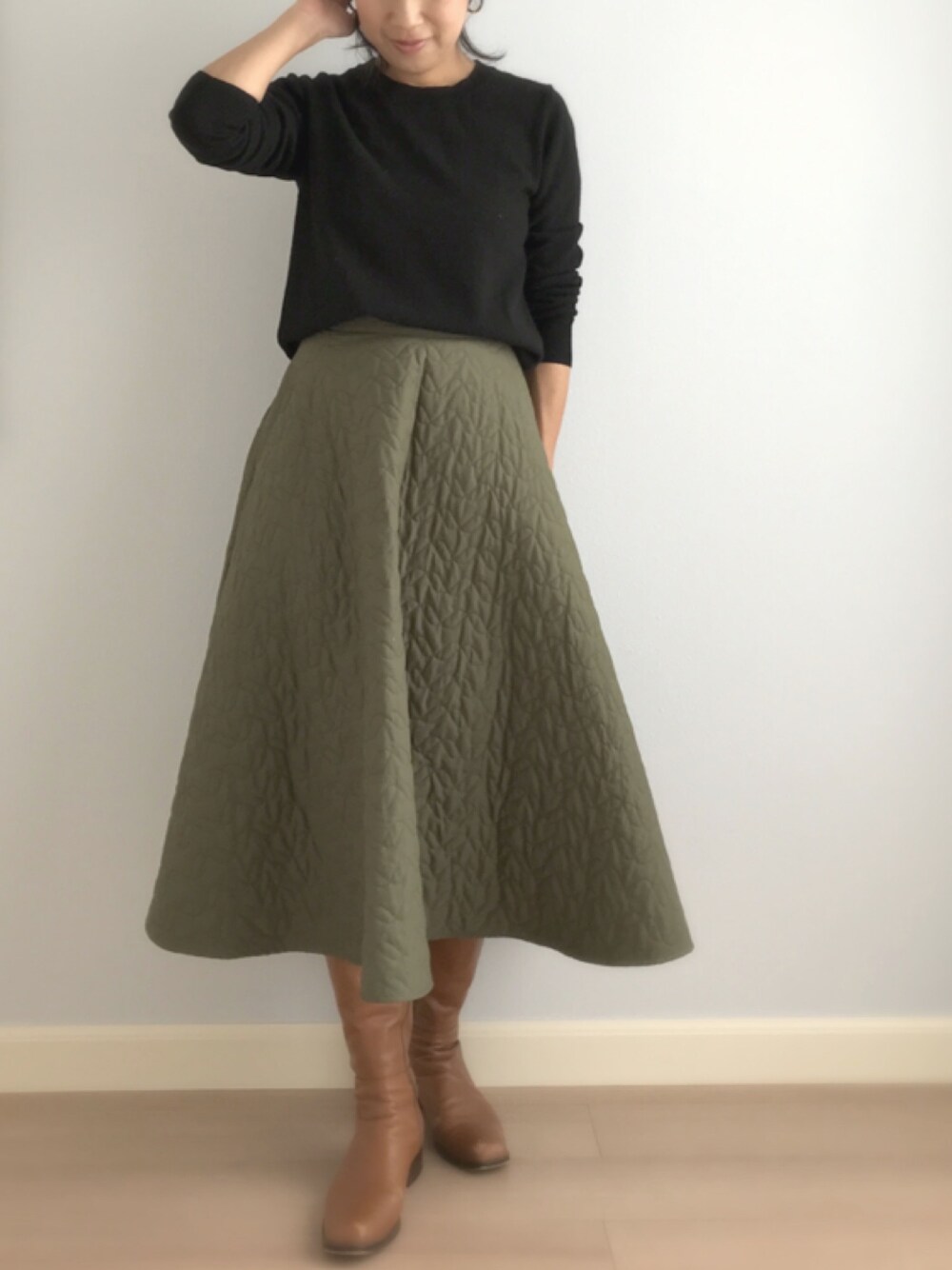 上下UNIQLO。超シンプル😆 キルトスカートかわいい〜(๑˃̵ᴗ˂̵)