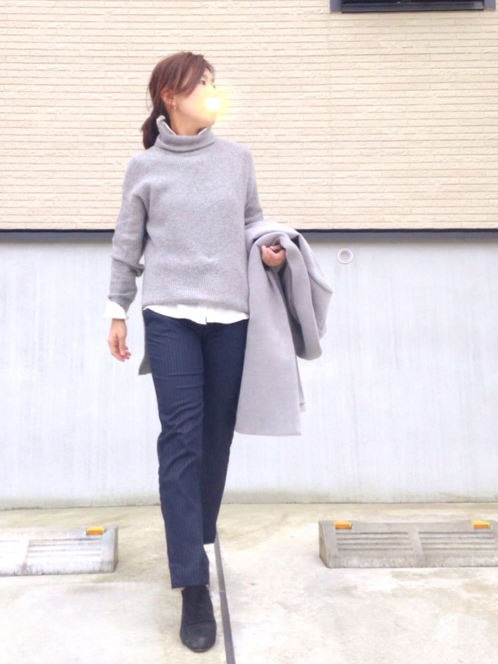 冬に逆戻りで寒かった〜😣 昨日のトレンチは クローゼットの奥へ… UNIQLOのタートルネックチュニック の中に白シャツ重ね着しました。 あったかい☺️
