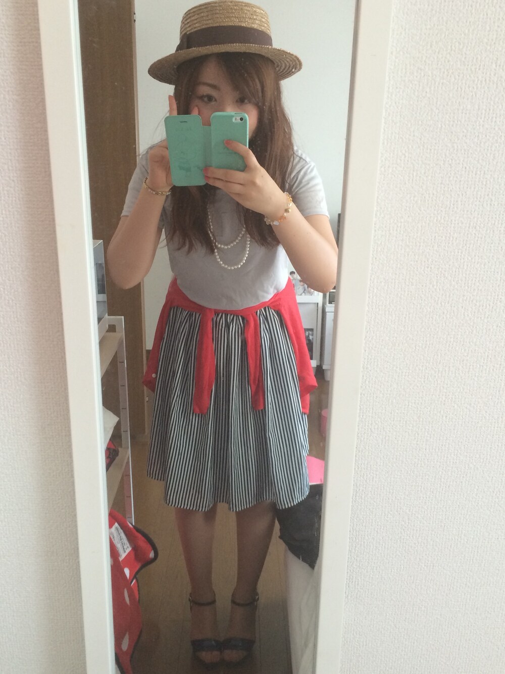 また夏のお嬢さんスタイル(*・ω・*) 私ったらこういうコーデ好きなのね(´∀`人)笑 東京は夜は雨予報と聞いて、家出る前にカンカン帽は脱ぎましたw 最近スニーカーが多かったけど、ヒール履くと気分が違うね!なんか女感出そうってなるというか、なんというか。。