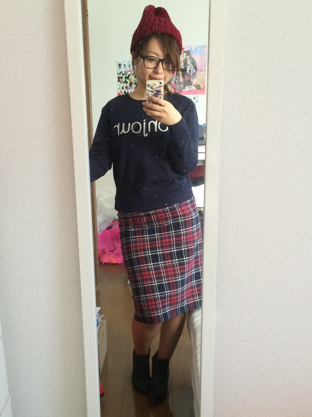 tomomichangsのニットキャップ/ビーニー「ボルドーニット帽」を使ったコーディネート