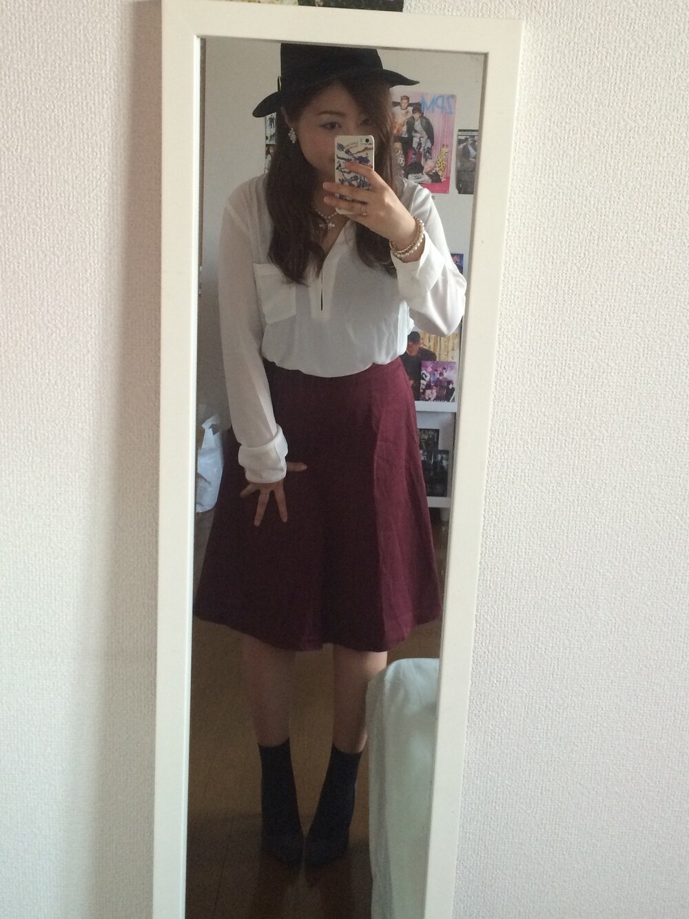 今日は夏戻りみたいに暑いのでTシャツにしちゃおうかと思ったけど、友達とお揃いで買ったスケシャツにしました← その子がそれを着てて黒いハットというので私も少しお揃コーデ♡ 透けてるとはいえ、暑い(´∀`)
