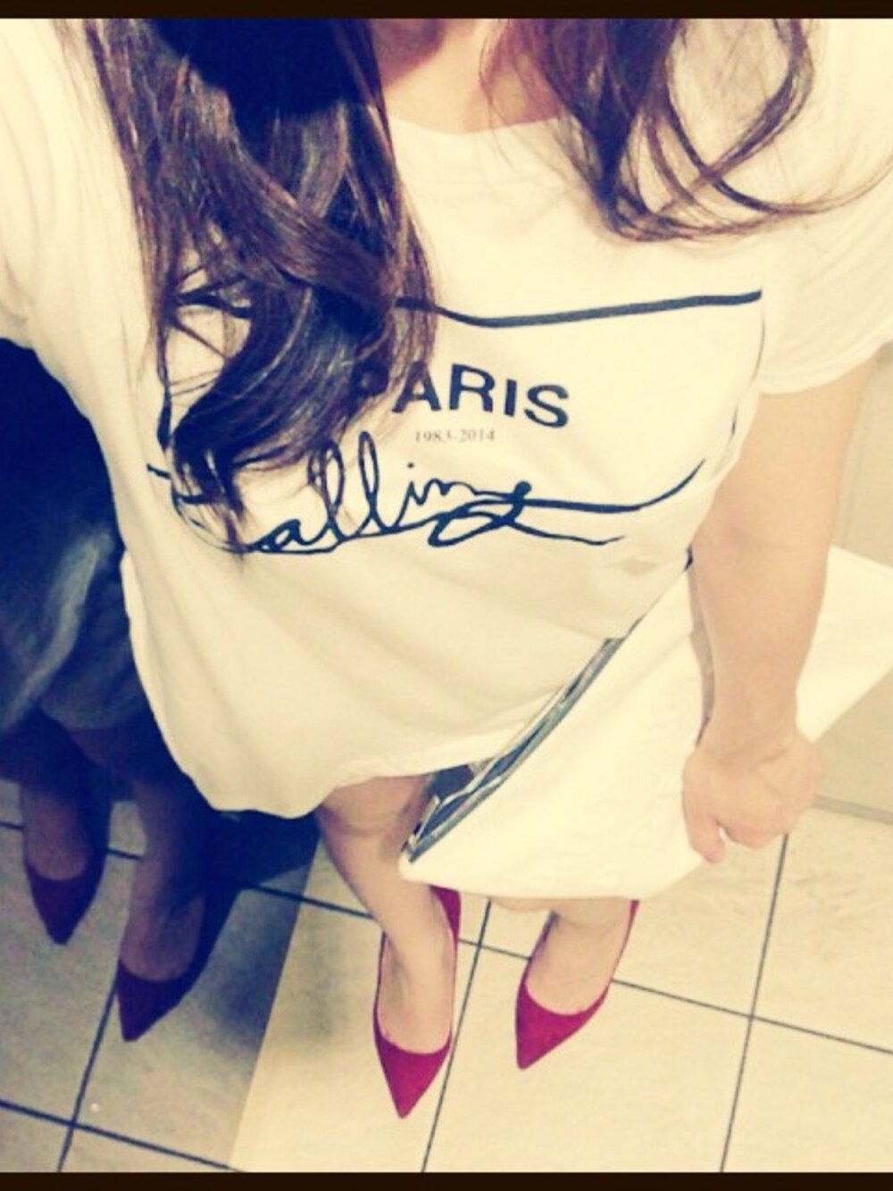 全身ホワイト。 足元に赤を入れてみました♥︎