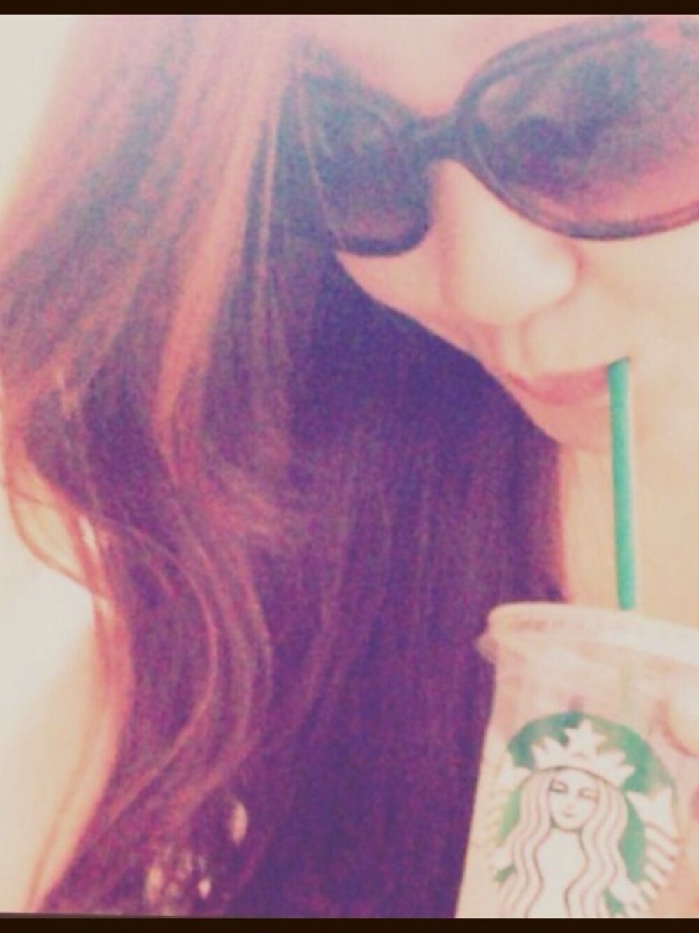 日差しが強過ぎて目が真っ赤(T_T) サングラスはZARA、形が綺麗なので気に入ってます♥︎ ソイラテが好物♥︎