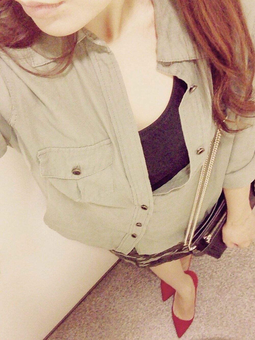 秋らしくなってきたので カーキのシャツを着ました♥︎