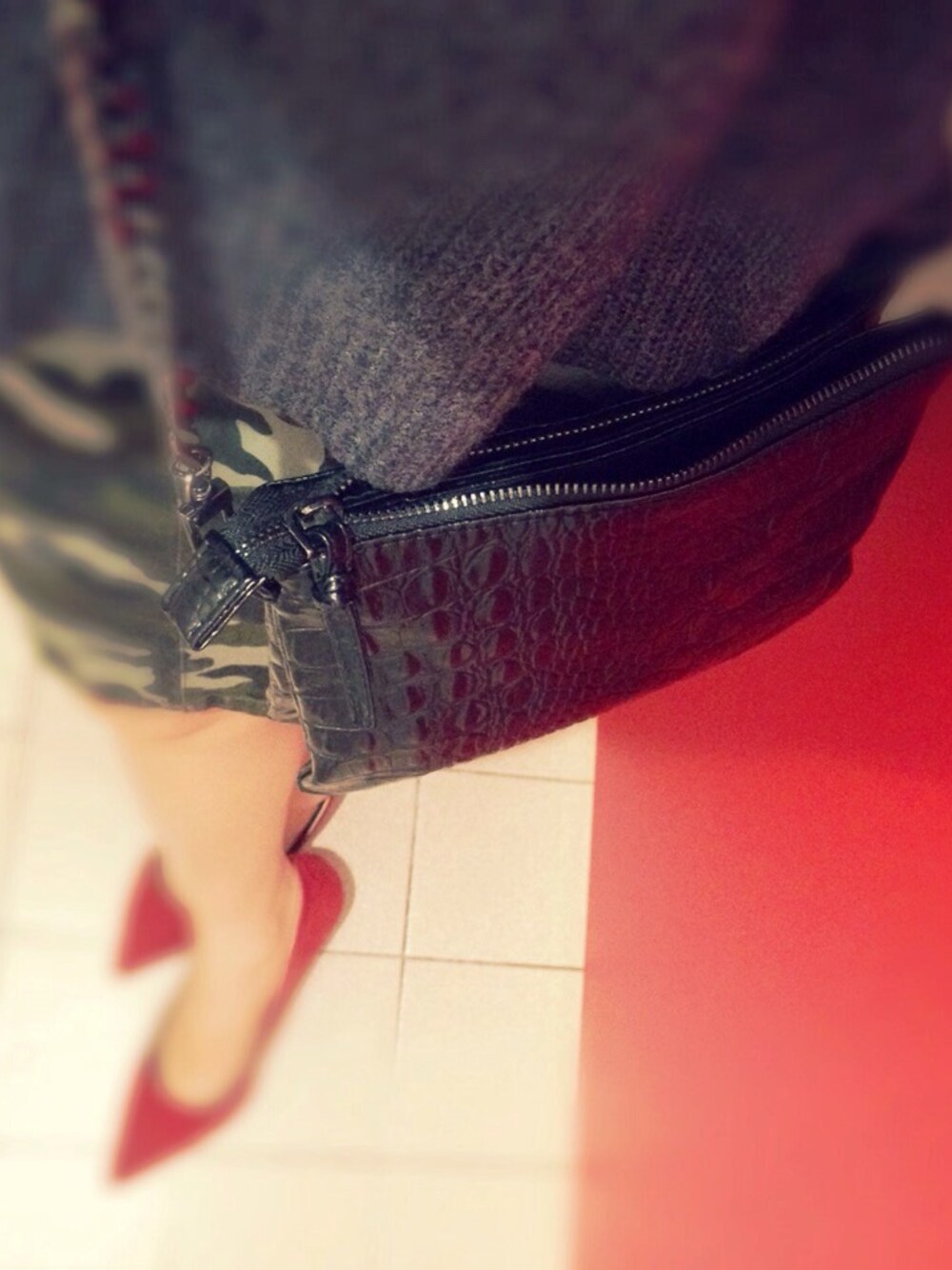 ブラック系のショルダーバッグを着用したレディースの秋コーディネートの1枚目の写真