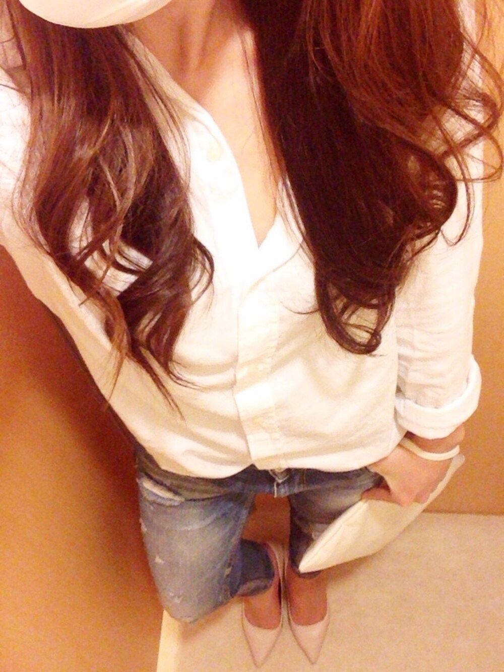 白のシャツをサラッと着たくて寒さなんて我慢!w
