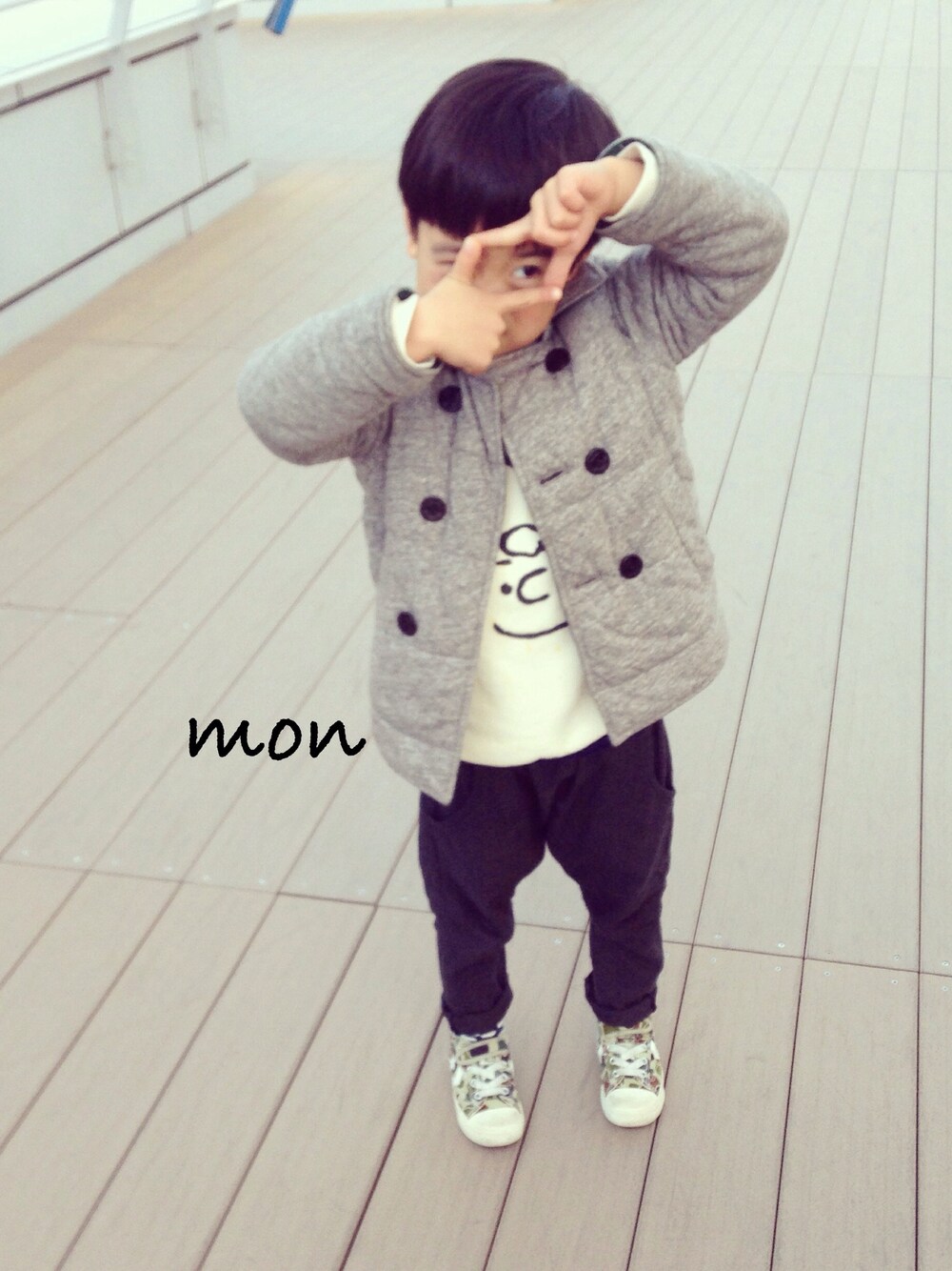 かっこいいカメラマンのポーズ( ´◡͐`)✰︎ 小窓のsen+初登場ママのバックショットはmonが撮ってくれました♡