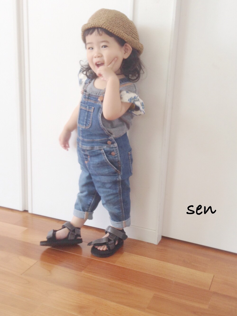 今日も可愛いのポーズで💓 オーバーオール、そろそろ暑いしサイズもヤバくなってきた💦残りわずかいっぱい着せたいな😍✨