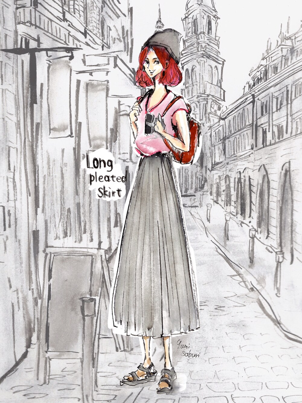 今年の流行りのロングプリーツスカート♡やっぱりグレーが便利で好き♡