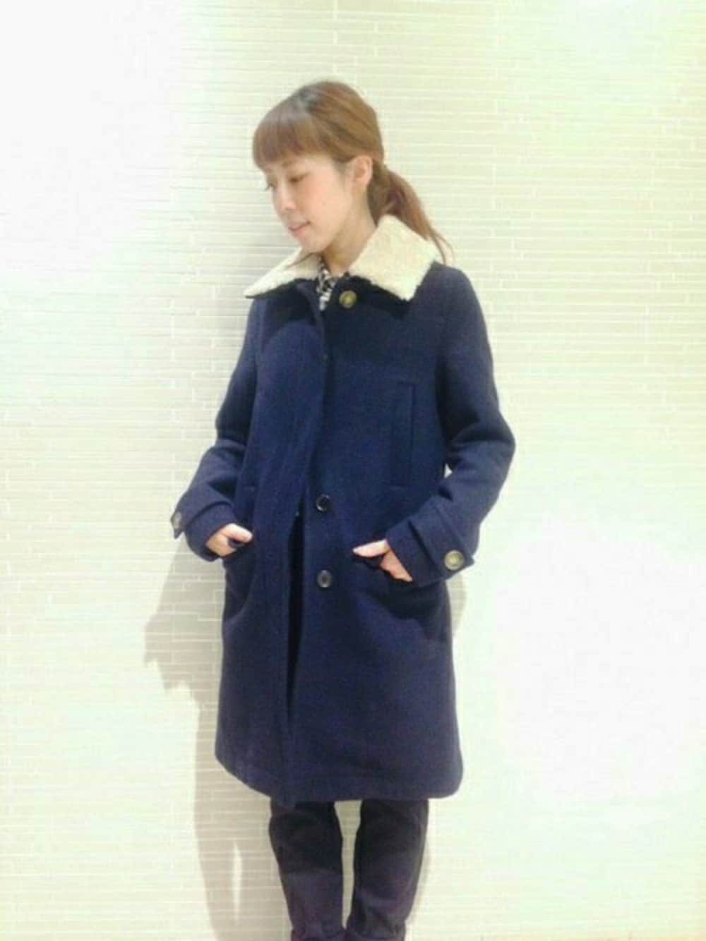 ボアが取り外し可能なステンカラーコート。ベーシックで使いやすいうえに暖かいコートです。