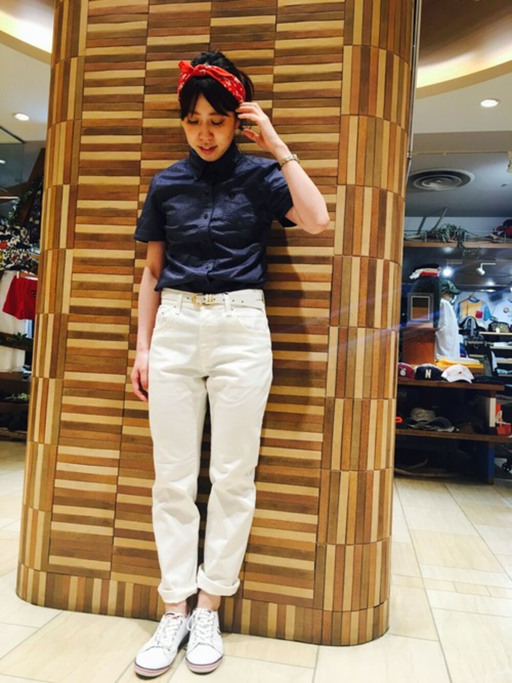 ボーイフレンドデニムはタックインして スッキリとしたコーディネートにしました。