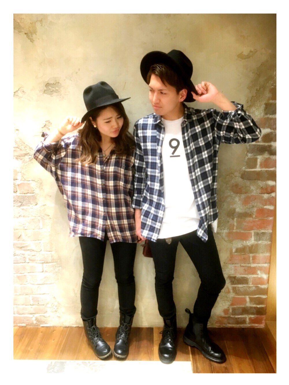 ペアルックチェックコーデ