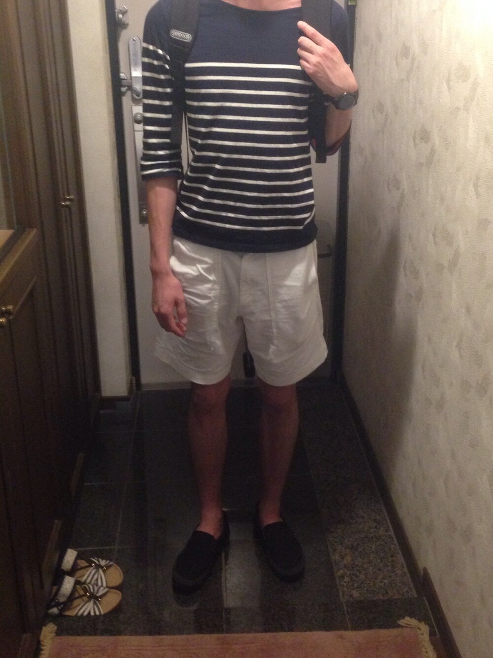 ブラック系のスニーカーを着用したメンズの夏コーディネートの1枚目の写真