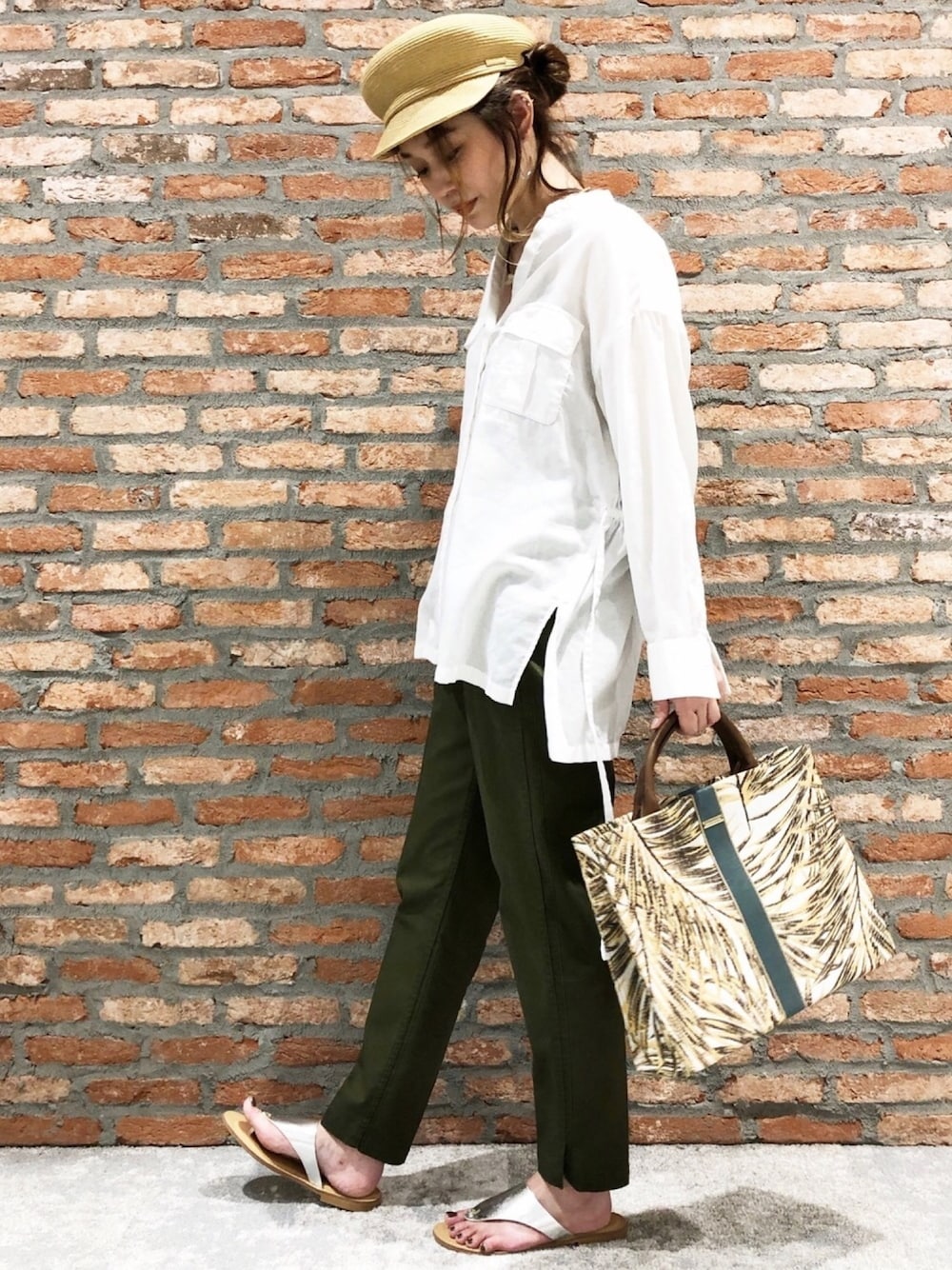 エアリースタンドカラーシャツ×コットンリネンミリタリーパンツ