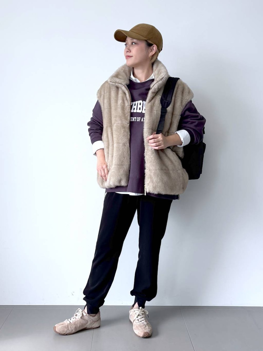 ⭐️ミンクライクドロストベスト 着回し力のある、リッチなファーベスト✨ フェイクファーの表地に横段のステッチを施すことで、ミンクファー感がUP! 中綿を間に挟むことで、程良いボリューム感がプラスされ、フェイクファーでも本物のような雰囲気に。 昨年より身幅・肩幅等のサイズ感を変更し、着膨れして見えないよう肩のラインが沿うようなデザインに。 裾はドローコードが入っており、絞ればすっきり見えも◎ 首元は内側もファーになっていて、包まれるような着心地です。 ⭐️ロゴBIGスウェット ルーズなシルエットが今っぽい、トラッドなロゴスウェット✨ メンズライクなシルエットに裾にラウンドをつける事で全体が野暮ったくならないデザイン。 ロゴのバランスが絶妙なプリントスウェットで、ロンTとのレイヤードもおすすめです。 プリントの「WORTHBRIDGE」は架空の学校名。 「WORTH」は品格のあるという意味。 ⭐️ダブルクロスジョガーパンツ 裾リブのフロントにスリットが施されたジョガーパンツ。 さり気ないアクセントになるだけでなく、裾のおさまりが良く、綺麗なシルエットをキープします。 ヴィンテージ感のある布帛素材なので、コーディネート次第でドレッシーな雰囲気も作れます。 ◾︎フォローしていただくと、最新スタイリングをすぐご確認いただけます😸 ◾︎インスタ : @by_nishi24も是非ご覧ください😸