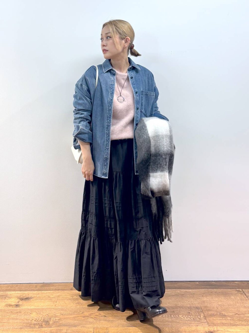 ⭐️カットデニムシャツジャケット キレイ見えも叶うアウターライクなジャケットデザインのデニムシャツ✨ カットデニムならではの柔らかな着心地で羽織りとしても活用出来る程よい厚み。 ヴィンテージ感のあるインディゴはカジュアルに。 ⭐️FOXカシミヤプルオーバー リラックス感のある心地よい肌触りが魅力のFOXカシミヤニット✨ 前後着用可能で着回し力があり、Vネックはリブ等の切り替えをせず編みでフラットに、クルーネックは見返し仕様できれいめに。 ゆったりとしたサイズバランスでリラックス感のある一枚です。 ⭐️ピンタックレースコットンスカート ピンタックとレースをあしらった上品なティアードフレアスカート✨ 秋冬のスタイリングに抜け感をプラスしてくれる軽やかな素材感です。ロゴニットやブルゾンを合わせたカジュアルMIXなスタイリングが今の気分。 ◾︎フォローしていただくと、最新スタイリングをすぐご確認いただけます😸 ◾︎インスタ : @by_nishi24も是非ご覧ください😸