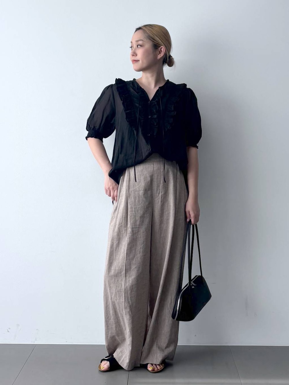 ⭐️綿ボイルフリルブラウス ほんのりフェミニン、一枚で映えるボイル生地のブラウス✨ たっぷりのギャザーやピンタックを施したブラウスですが、綿のボイル生地で甘すぎない印象に。 胸元のデザインもあるのでジャケットやブルゾンのインナーとして、これから暑くなる季節には一枚着のブラウスとしても◎ ⭐️COMFITタックパンツ シンプルなシルエットでオンでもオフでも使えるワイドパンツ✨ すっきりとしたシルエットで、通勤にも使えるキレイめデザイン!落ち感のある素材でトップスはインでもアウトでも決まるシルエットです。 シンプルなワンタックデザイン&後ろはゴムでイージーな穿き心地なのもポイント! ◾︎フォローしていただくと、最新スタイリングをすぐご確認いただけます😸 ◾︎も是非ご覧ください😸
