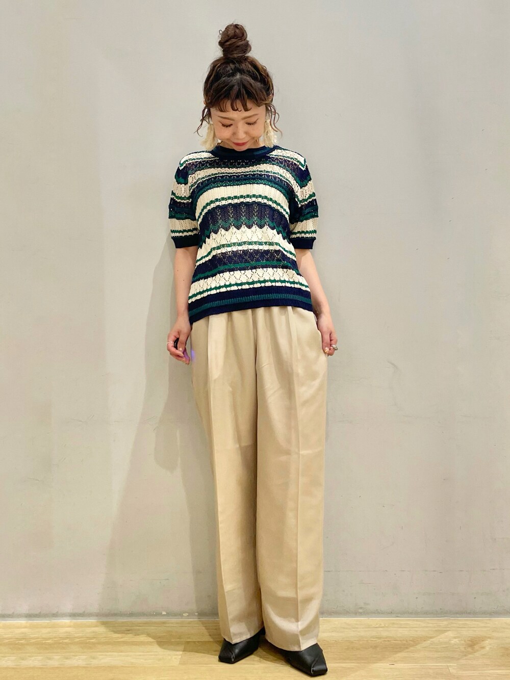 tomopuuのニット/セーター「レトロボーダーニットプルオーバー」を使ったコーディネート