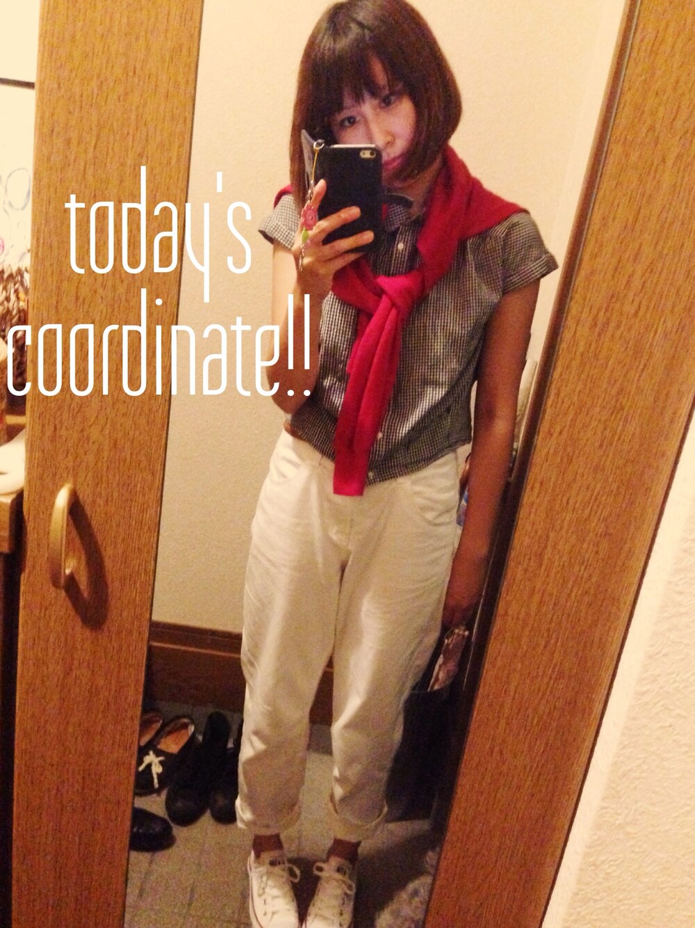 お気に入りの赤いカーディガン!!converseでスニーカーを買ったので合わせてみました(*^^*)