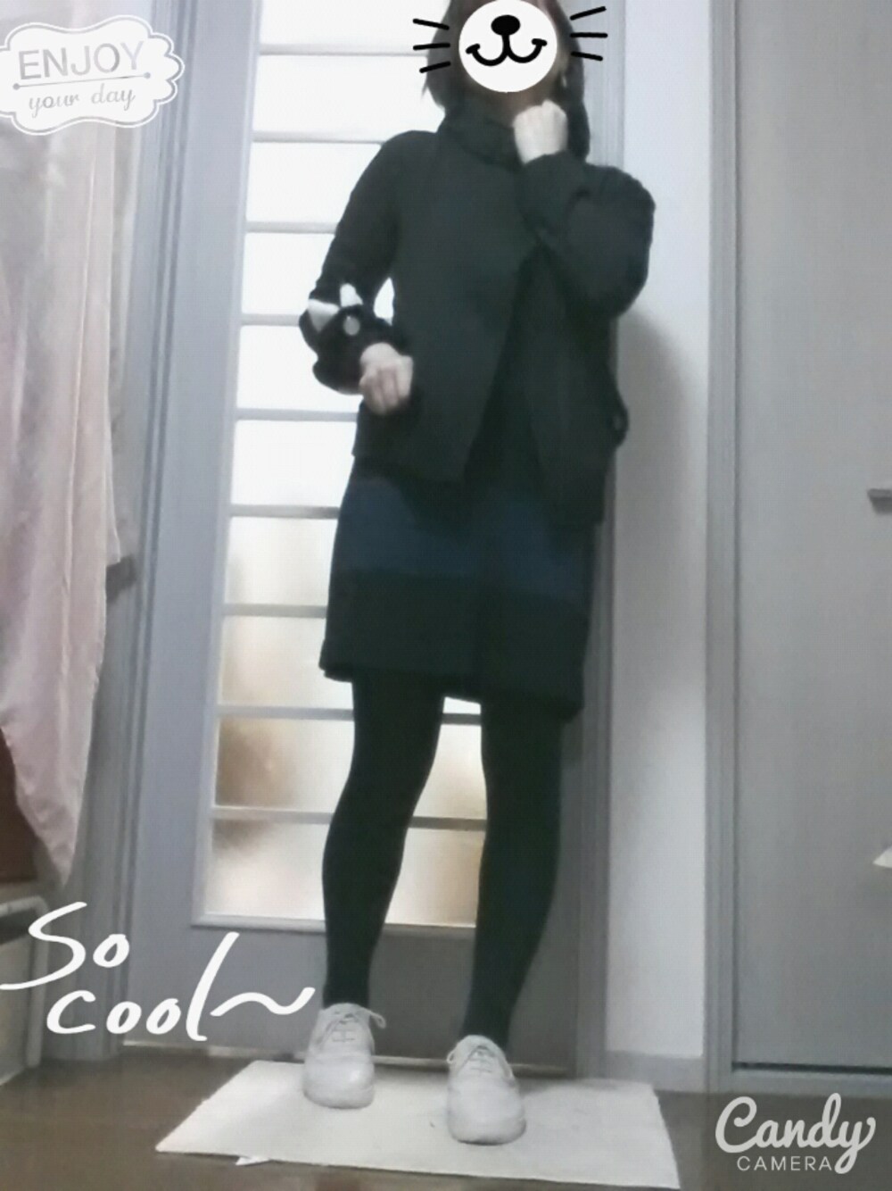 寒ーい(*_*) 首まであったかブルゾン たくさん歩いたのでスニーカーで正解♬ 腕にはネコ耳シュシュ